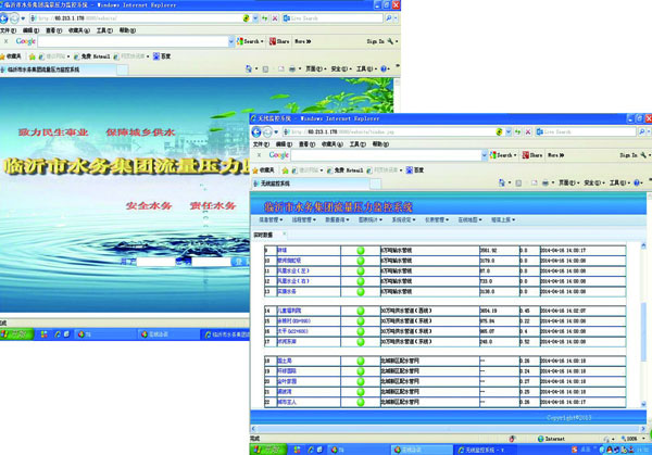 三、系統(tǒng)功能 v 實時采集管道壓力、流量數(shù)據(jù)數(shù)據(jù)接收中心服務(wù)器; v 能顯示整個管網(wǎng)系統(tǒng)的供水管線圖及地理分布圖(及用戶用水信息); v 集中顯示各監(jiān)測點重要參數(shù)(如瞬時流量、累計流量、壓力、電池電壓、報警狀態(tài)、通訊狀態(tài); v 各用水單位的界面和報表功能,可隨時增加或刪除,操作方便快捷; v 按區(qū)域、地塊劃分用戶,注明長期用戶和季節(jié)性用戶,能單獨顯示各用戶子站的全部測量參數(shù)及設(shè)置參數(shù); v 能自動生成各用戶的瞬時流量、累計流量、壓力的并行歷史曲線,并可查詢?nèi)我庥脩簟⑷我鈪?shù)、任意時段的歷史數(shù) 據(jù),歷史數(shù)據(jù)和曲線可以轉(zhuǎn)存和打。 v 能生成各用戶的用水量日報表,月報表及年報表,生成分時等特殊報表的功能。任意組合用戶測量趨勢、測量參數(shù)累 計、故障時段等趨勢記錄打印輸出。 現(xiàn)場圖片  |